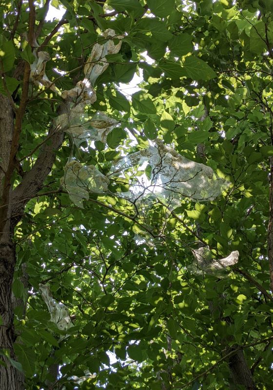 The fall webworm is a common pest of shade and ornamental trees in Texas. They cover leaves, branches, and trees in a silken web.